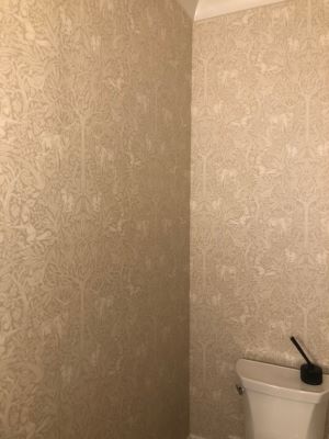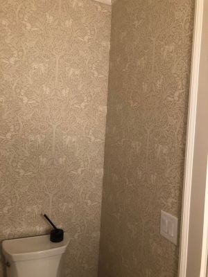 Discover the charm of our expertly installed sage green and pink vines wallpaper, designed to bring a touch of nature and sophistication to your bathroom.Ready to elevate your home or office with our expert wallpaper and painting services? Contact Hill Country...